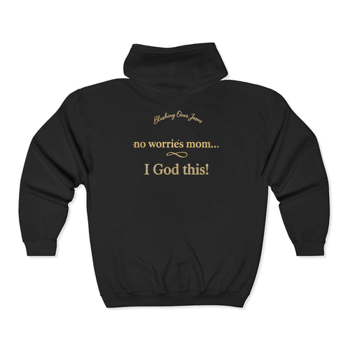 Blushing Over Jesus Hoodie — “No Worries Mom… I God This!” Inspirational Christian Zip-Up
