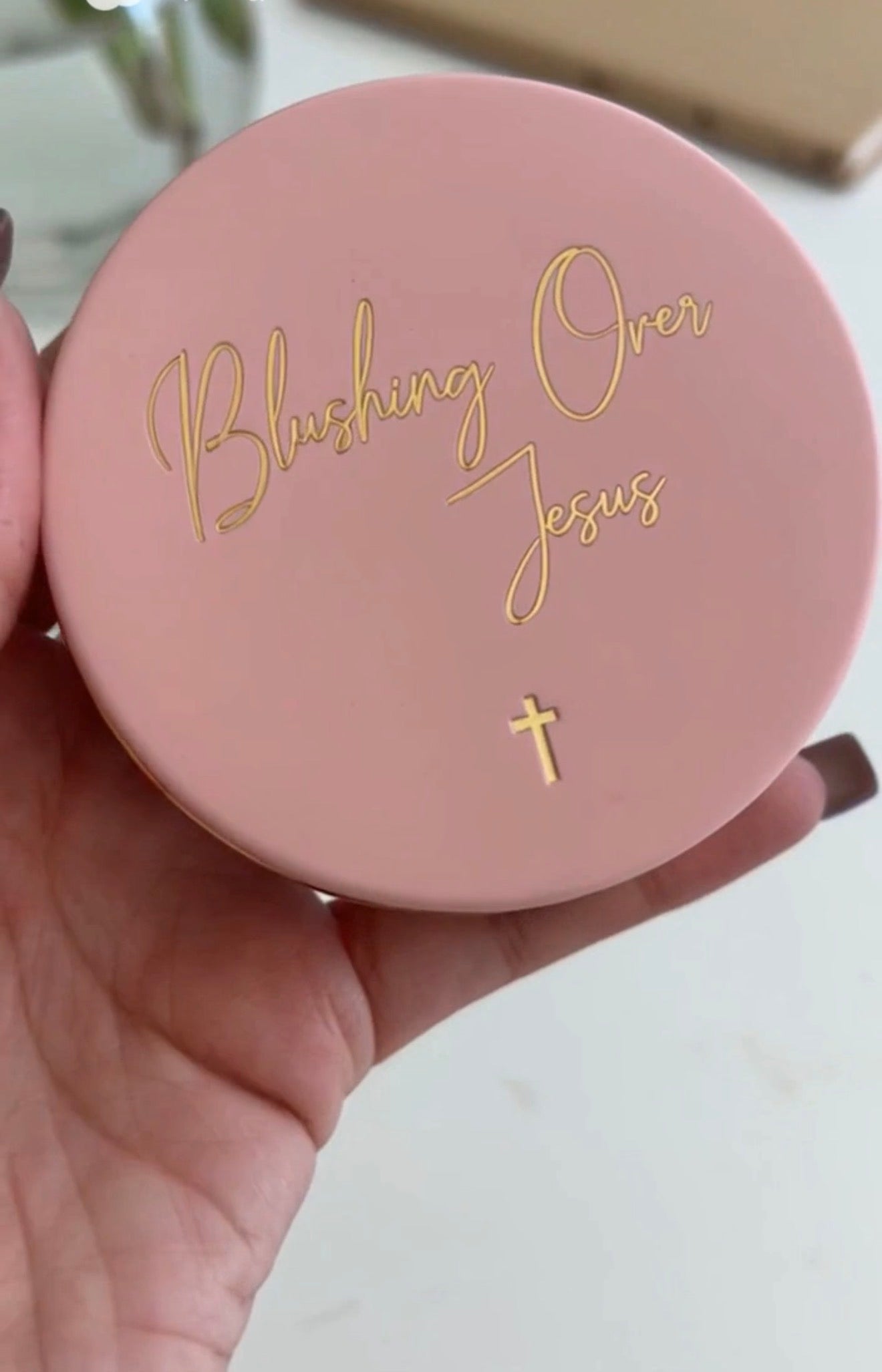 Champion Sweatshirt — "Blushing Over Jesus" Pastel Gospel Crewneck